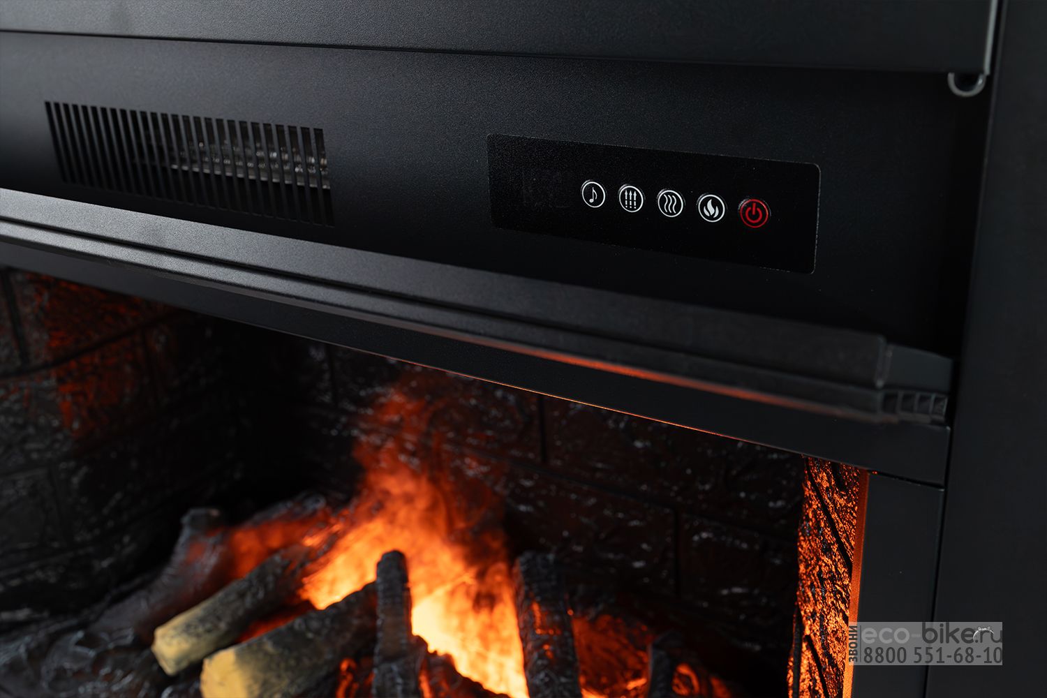 Модель оснащена декоративным муляжом дров, а звуковой эффект потрескивания добавляет атмосферности. Также в очаге предусмотрена функция обогрева, что в сочетании создает полное ощущение работы традиционного дровяного камина. Декоративная решетка на передней панели скрывает элементы управления и воздухозаборные отверстия, делая дизайн камина более эстетичным.
